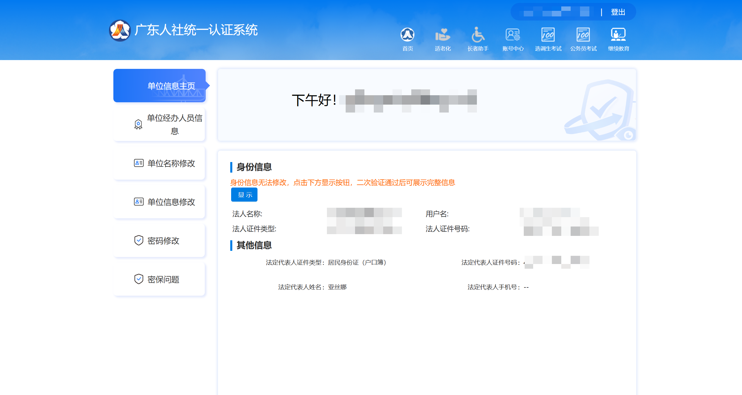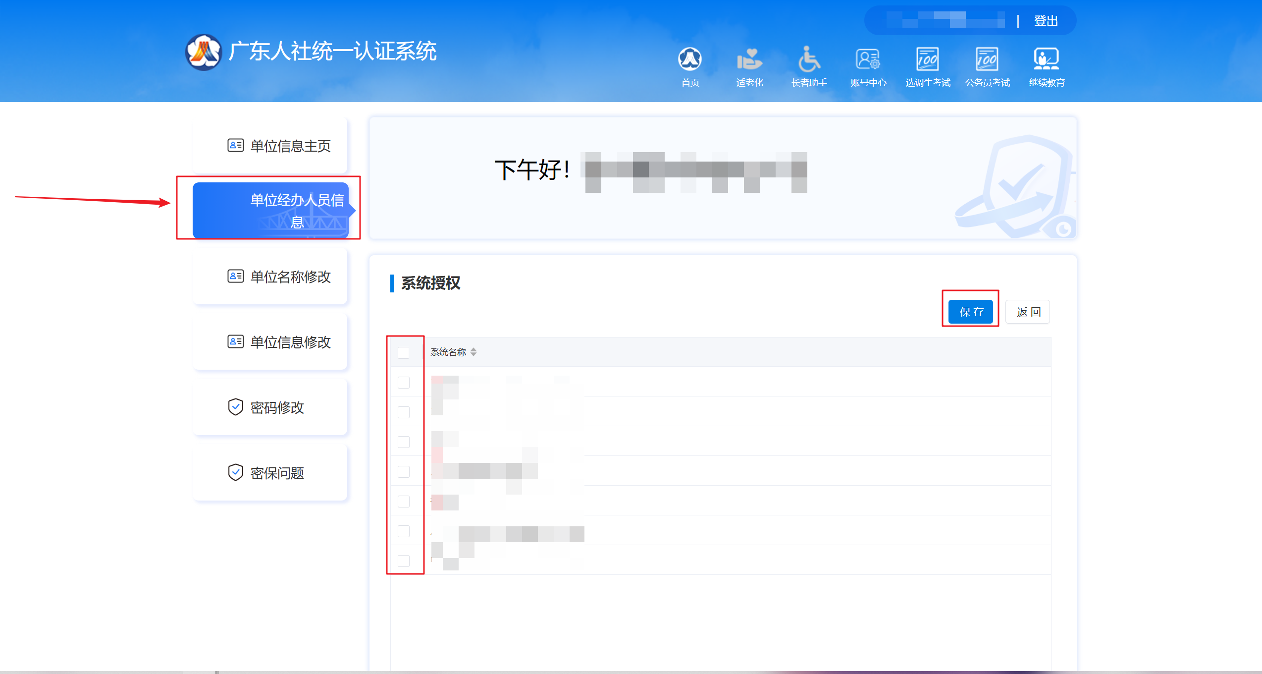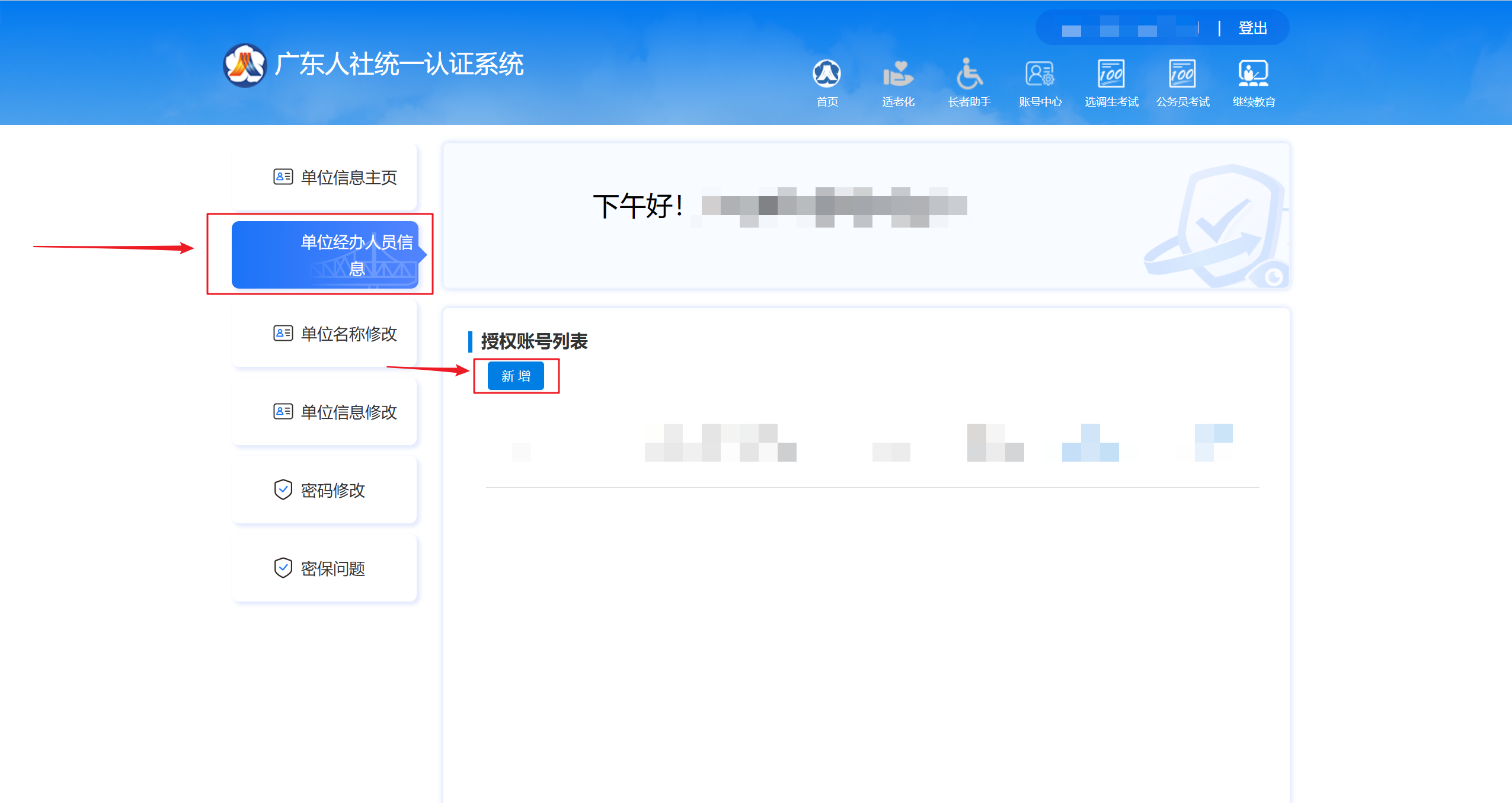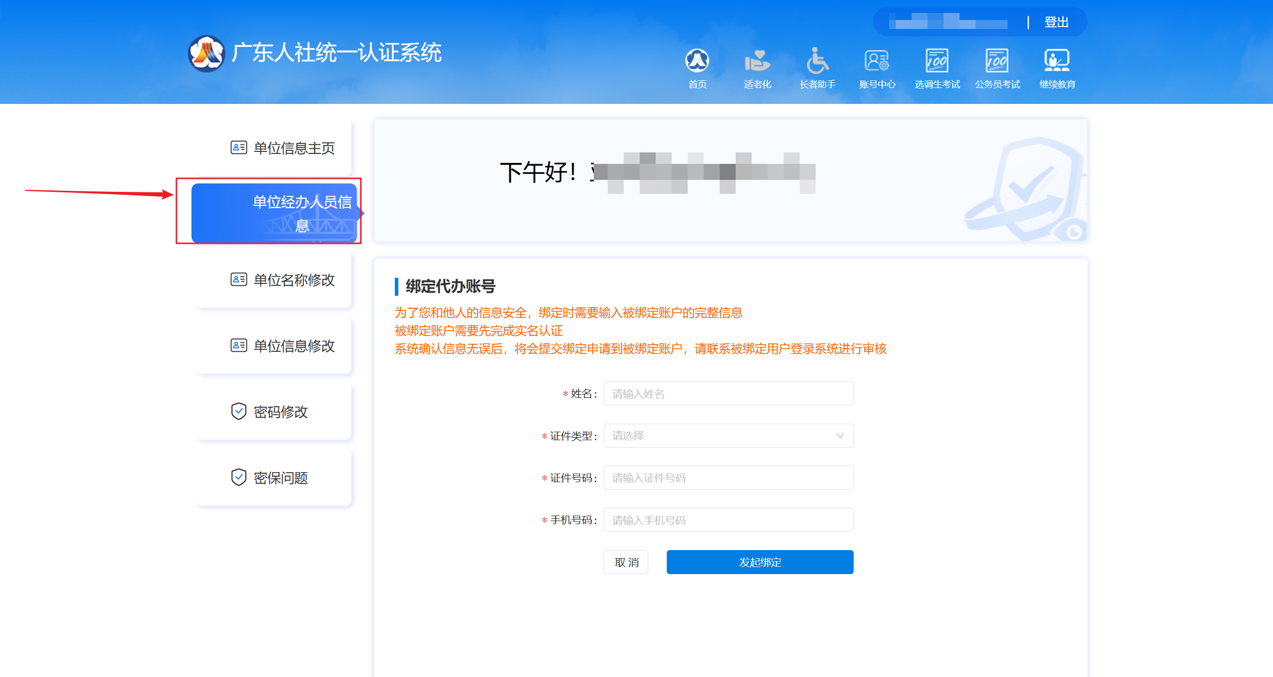 ,选择“单位经办人员信息”